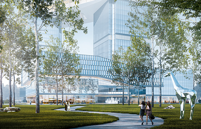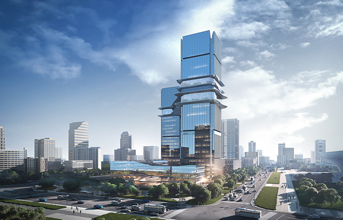 ? ? 本項目為高鐵77號地商業(yè)與服務業(yè)設施地塊,項目以打造開放的城市門戶、建設高端的商業(yè)辦公地標建筑、營造舒適的公園辦公環(huán)境為設計策略,為城市增加生機活力。