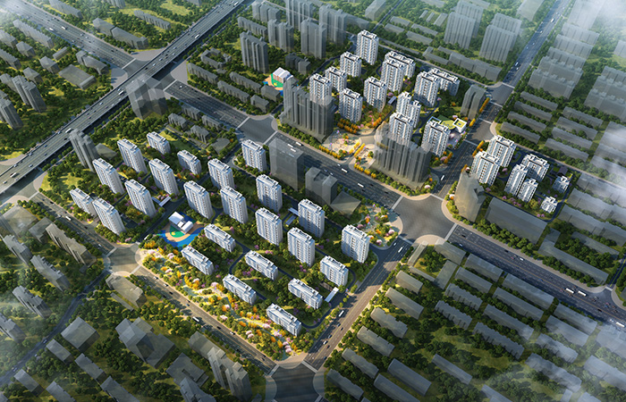 項(xiàng)目用地面積約9.97公頃,容積率2.2、建筑密度20%、綠地率35%。共規(guī)劃26棟住宅樓、一所6班幼兒園?偨ㄖ娣e共計約32萬平方米。