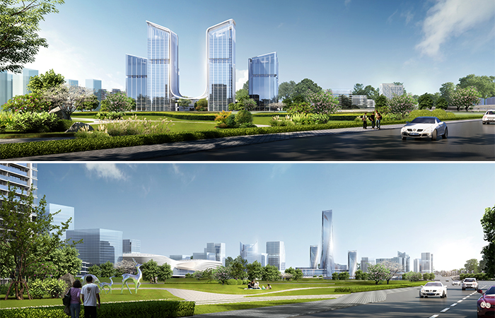 方案選取太平河片區(qū)地標建筑為制高點,結(jié)合友誼大街、復興大街和太行大街三個重要城市節(jié)點,形成“一主三副、高低錯落、變化有致”的城市天際線,重要節(jié)點處布置開敞空間和高層建筑組團,凸顯街道界面,豐富空間層次,視覺感受絕佳,彰顯城市輪廓的特征與標識性,譜寫出一副城市風光影畫。
