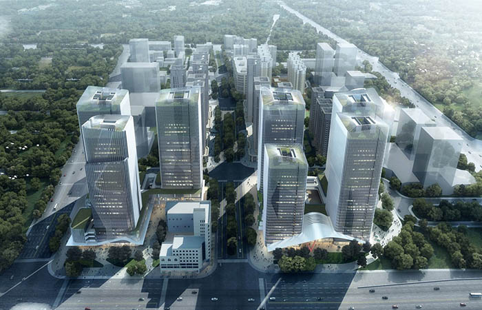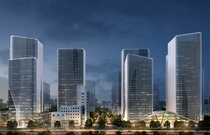 建筑立面提取中國(guó)傳統(tǒng)山水文化理念,將自然的意境轉(zhuǎn)換為建筑中的意象運(yùn)用在建筑語(yǔ)言上;將自然的詩(shī)意帶入城市,在高密度、快節(jié)奏的區(qū)域重構(gòu)建筑和環(huán)境的共生關(guān)系,通過(guò)豎向的立面肌理與自然有機(jī)的曲線相結(jié)合,創(chuàng)造具有情感性、歸屬感的自然意境和具有標(biāo)示性的城市形象。