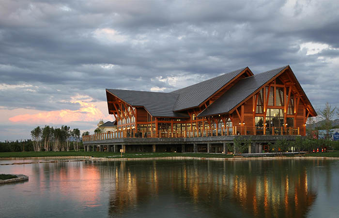 社區(qū)服務(wù)中心采用美式工匠風(fēng)格,具有異域風(fēng)情和文化韻味。松木屋采用輕木結(jié)構(gòu),外墻的墻骨柱內(nèi)側(cè)為石膏板,外側(cè)為定向刨花板(OSB板),產(chǎn)自加拿大地區(qū)的紅雪松木望板等裝飾材料,墻骨柱之間填充不燃保溫材料。適當(dāng)?shù)脑O(shè)計、材料的選擇、施工和維護(hù)將會確保木材不會由于受潮而腐爛發(fā)霉,有效的防止水汽在圍護(hù)結(jié)構(gòu)內(nèi)部凝結(jié),并能夠?qū)⒊睔馀懦?。與傳統(tǒng)的鋼筋混凝土、水泥等建筑材料相比,木材是一種更低碳更環(huán)保的材料,同時具備改善聲學(xué)與熱性能的特質(zhì),可以為人們提供更舒適健康的室內(nèi)環(huán)境,保證優(yōu)良的室內(nèi)空氣質(zhì)量和營造一個溫暖緩釋壓力的氛圍。
