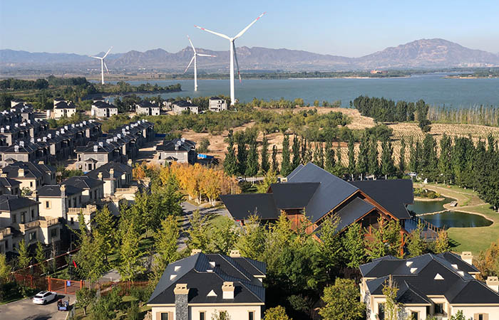 規(guī)劃結(jié)合豐富的場地特征,營造鄉(xiāng)野情趣。從南至北,依次有葡萄園、小七營村、原生樹林、官廳水庫,本次設(shè)計在充分遵循場地特征的基礎(chǔ)上,創(chuàng)造出“穿過園子,路過村子,經(jīng)過林子,回到房子,看見海子”的度假體驗。