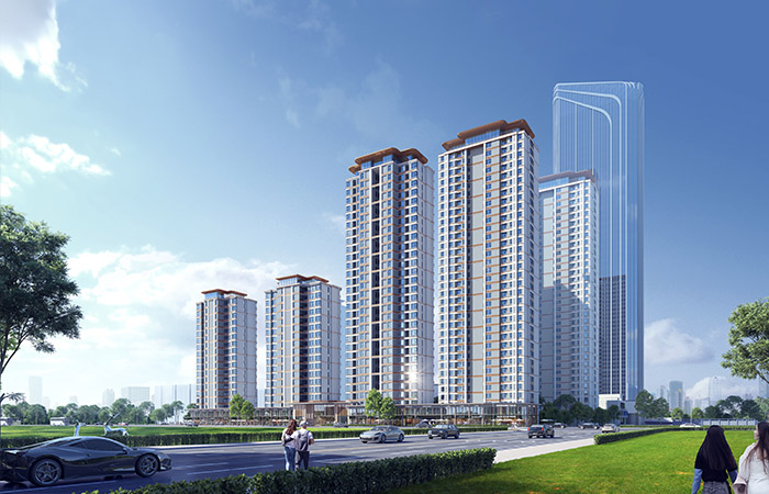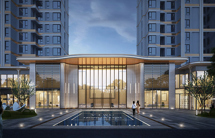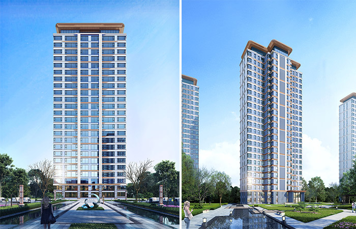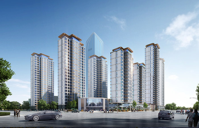 依托石家莊源遠(yuǎn)流長(zhǎng)的文化底蘊(yùn),弘揚(yáng)傳統(tǒng)文化的同時(shí)塑造城市新名片。建筑立面靈感來(lái)源于傳統(tǒng)器物美學(xué),引入“行云如意”的設(shè)計(jì)理念,打造具有文化內(nèi)涵的城市核心地標(biāo)。塔樓造型的對(duì)稱手法,視覺上強(qiáng)化了內(nèi)聚和向心力的群組感,在城市空間中脫穎而出,成為槐安路的地標(biāo)性建筑。住宅立面延續(xù)公建塔樓的設(shè)計(jì)語(yǔ)言,賦予建筑流暢柔美的姿態(tài)。