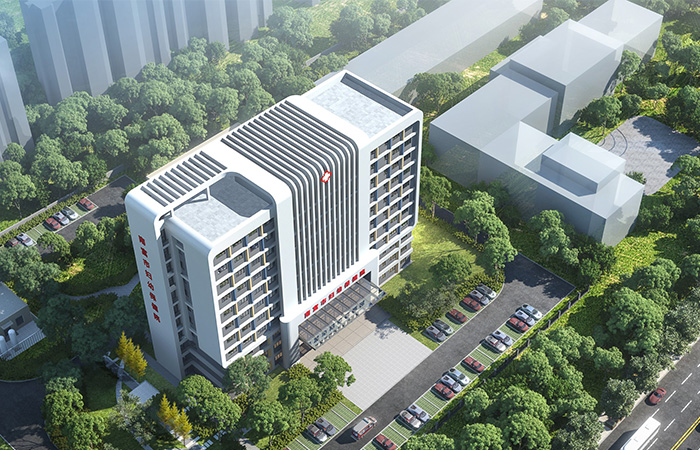 規(guī)劃設(shè)計在現(xiàn)狀建筑西側(cè)植入新建建筑體量,新建建筑與原有建筑形成中軸對稱的總體布局。在病房樓四周,設(shè)置大面積綠地景觀,營造出綠色共享的景觀區(qū)域,與自然為鄰,享受舒適環(huán)境。