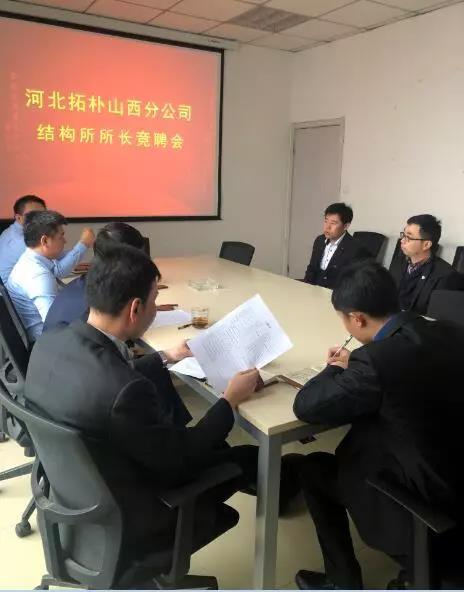 2019年2月26日,河北拓樸山西分公司結(jié)構(gòu)所所長(zhǎng)競(jìng)聘會(huì)在山西分公司召開(kāi)了。來(lái)自山西分公司的王巖松、李志輝參加了竟聘演講和現(xiàn)場(chǎng)答辯。