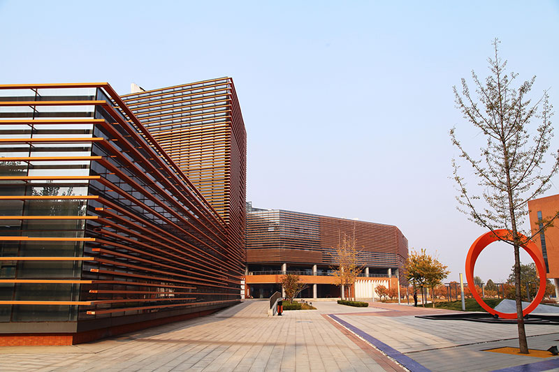 從整體規(guī)劃布局上看,校園內(nèi)各樓排布張弛有度,建筑與景觀(guān)相互結(jié)合,中央大湖與景觀(guān)廊架搭配蜿蜒蜷曲的步道,平靜中孕育詩(shī)意,給一所沉穩(wěn)的文化建筑帶來(lái)靈動(dòng)的韻律之美。