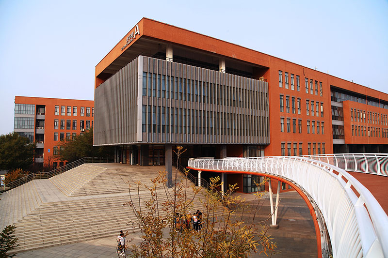 立面采用校園常用的紅磚手法,搭配鋼架及藍(lán)色玻璃幕,將傳統(tǒng)與現(xiàn)代相互結(jié)合,在給學(xué)生帶來(lái)濃厚傳統(tǒng)底蘊(yùn)的同時(shí)又不失現(xiàn)代創(chuàng)新的文化氣息。