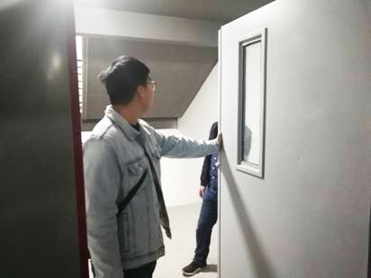 大家仔細(xì)觀察中庭的防火設(shè)計(jì),熱火朝天的討論中庭的擋煙垂壁和防火卷簾,不放過任何一個(gè)細(xì)節(jié)。