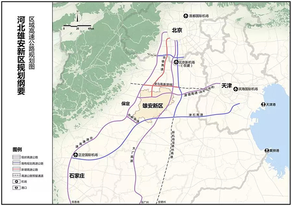 完善高速公路網(wǎng)。構(gòu)建“四縱三橫”區(qū)域高速公路網(wǎng)!八目v”為京港澳高速、大廣高速、京雄高速(含新機(jī)場(chǎng)北線高速支線)、新機(jī)場(chǎng)至德州高速,“三橫”為榮烏高速新線、津雄高速、津石高速,實(shí)現(xiàn)新區(qū)60分鐘到北京、天津,90分鐘到石家莊。加強(qiáng)新區(qū)與天津港(9.140, -0.19, -2.04%)、黃驊港交通聯(lián)系,暢通新區(qū)出海通道。